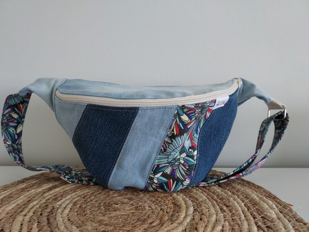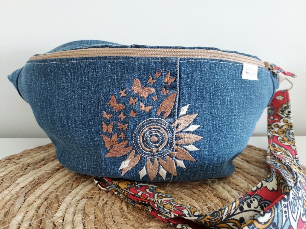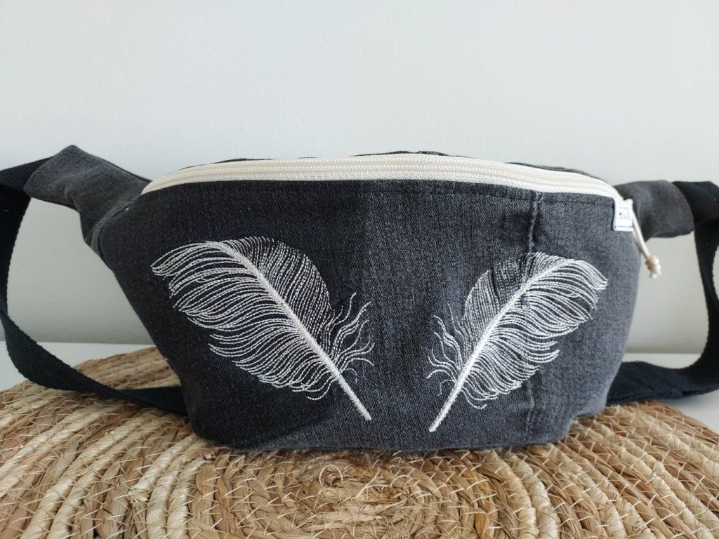 Sac banane en jean - brodé feuille