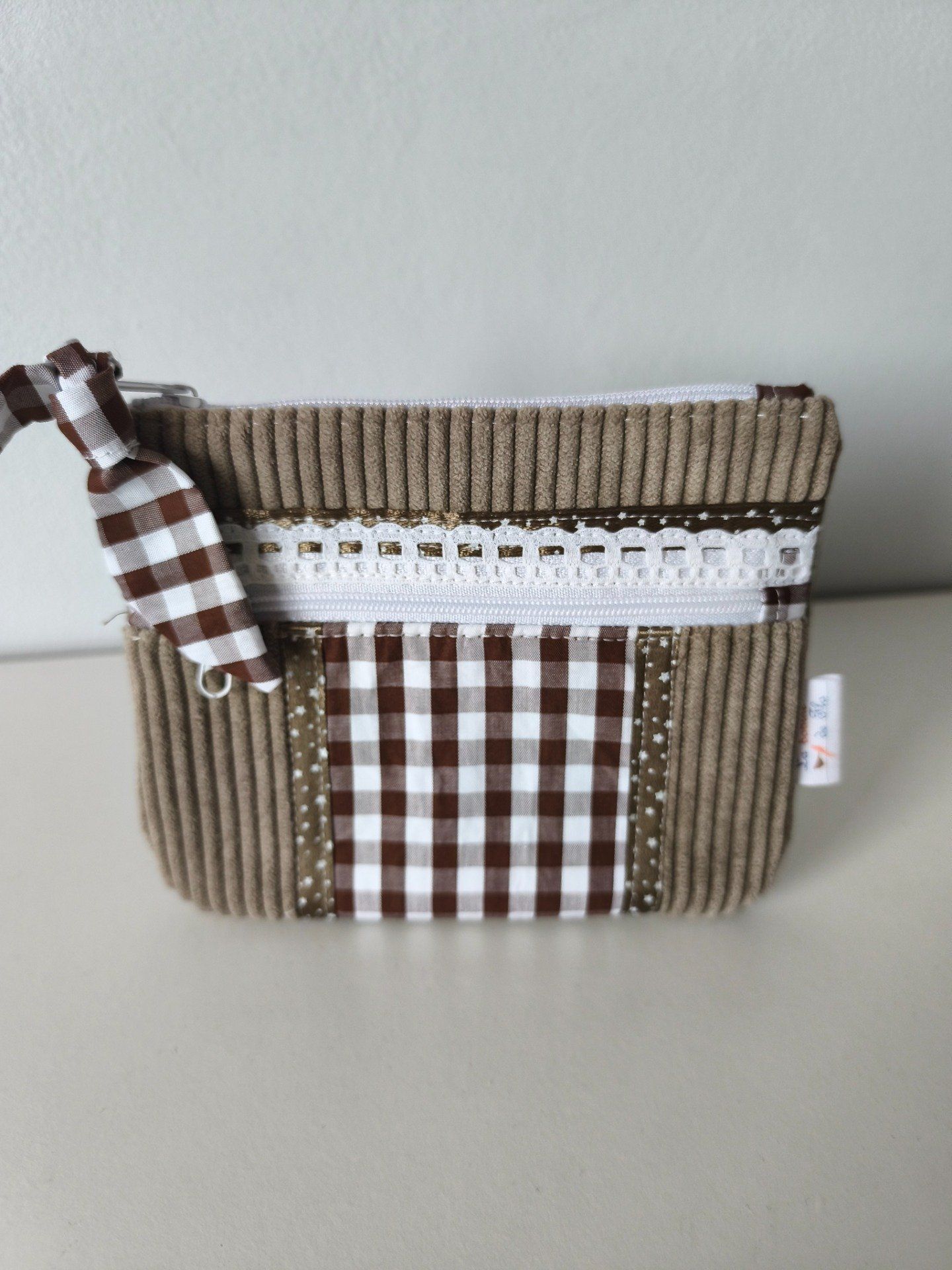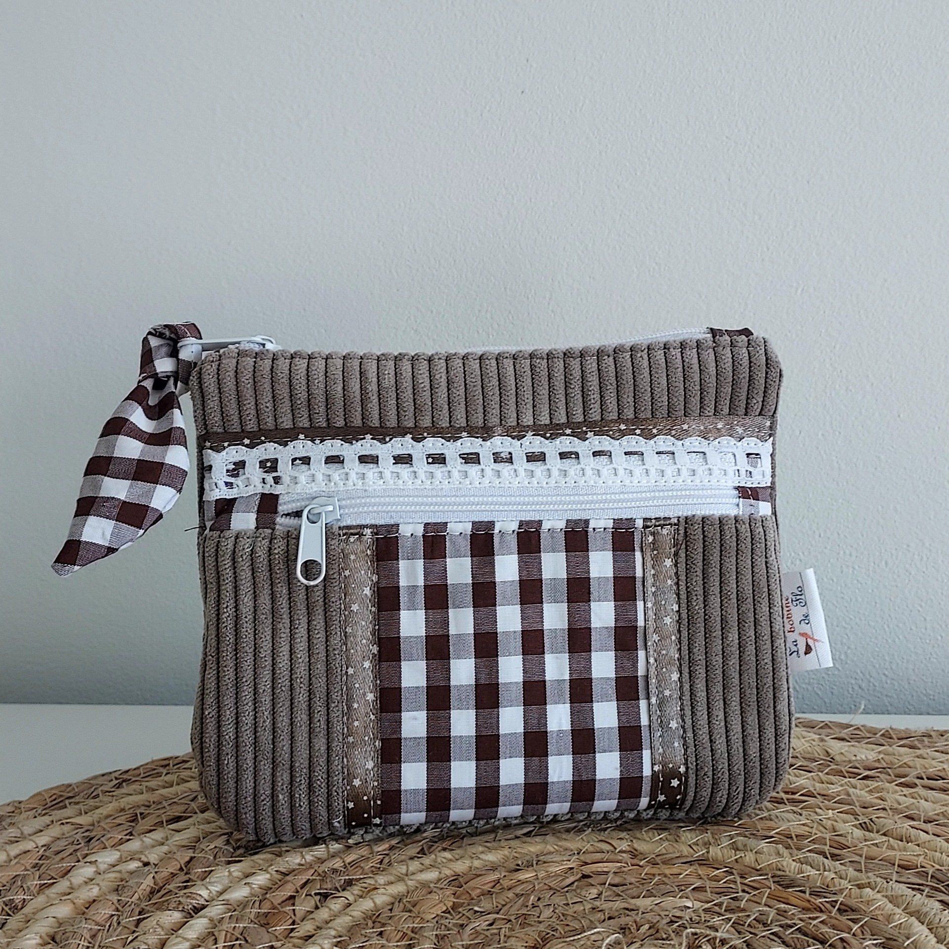 Porte-monnaie en velours et coton, ce porte-monnaie comprends 2 poches zippées, pratique pour les pièces, les billets et les cartes, ses papiers d’identité ou permis de conduire.
