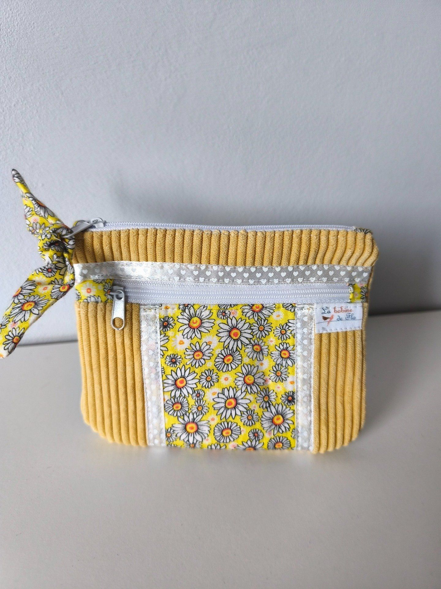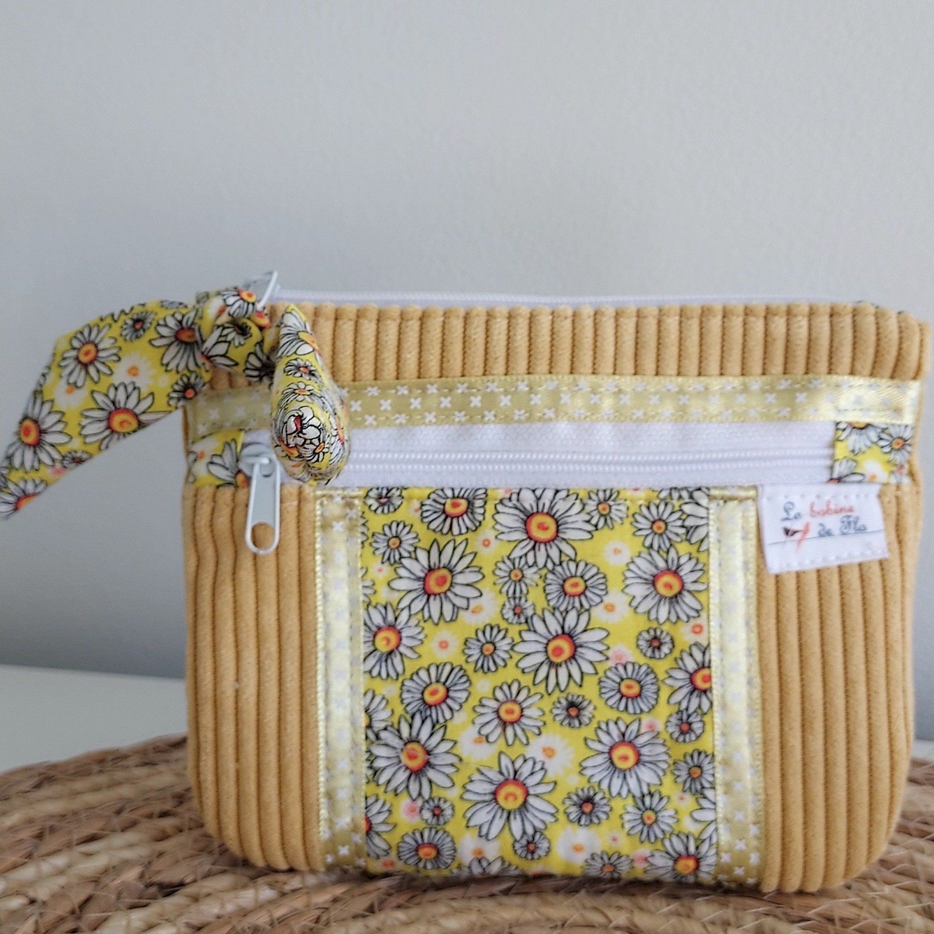 Porte-monnaie en velours et coton, ce porte-monnaie comprends 2 poches zippées, pratique pour les pièces, les billets et les cartes, ses papiers d’identité ou permis de conduire.
