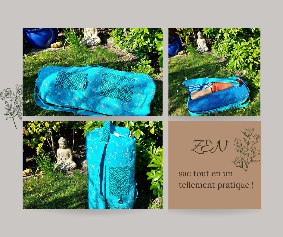 Sac ZEN Vous y rangerez le tapis, la brique, le plaid, les sangles, mouchoirs, téléphone, papier et clés.