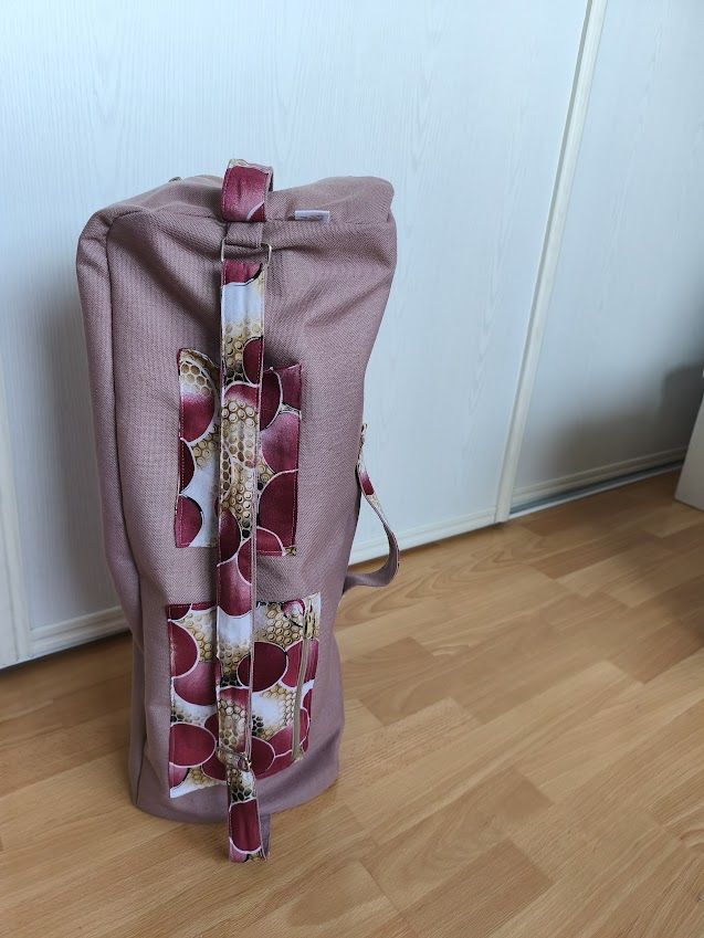 Modèle unique en tissu d'ameubleument rose et wax pour la doublure.