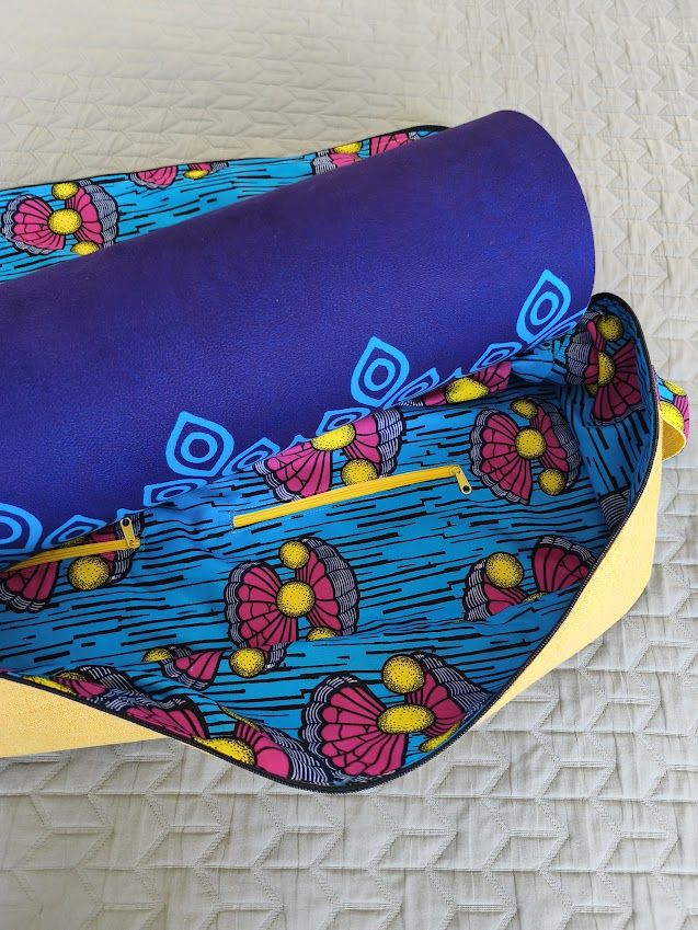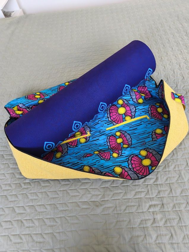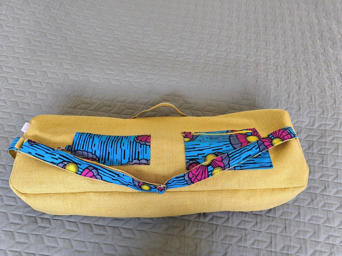 Modèle unique en tissu d'ameubleument jaune et wax pour la doublure.