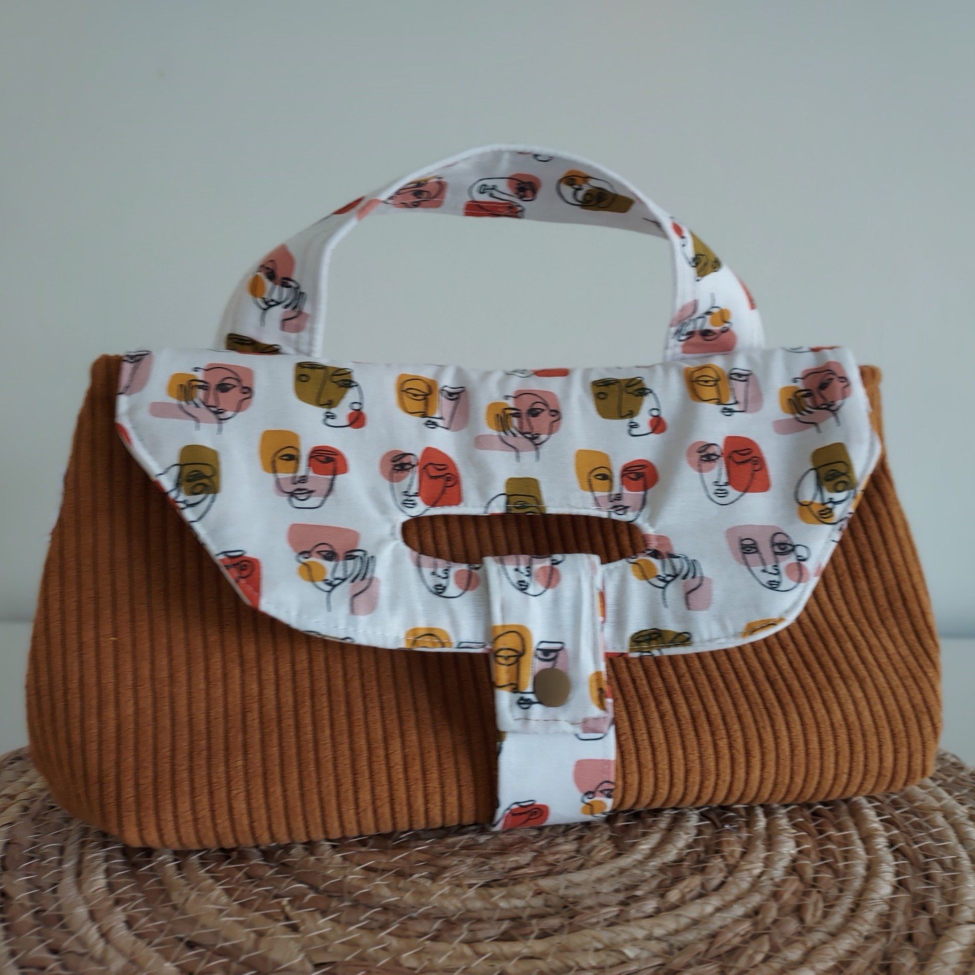 Description : En velours, coton, la doublure en cotonnade fantaisie, il comprend une poche zippée à l’intérieur de la doublure)
