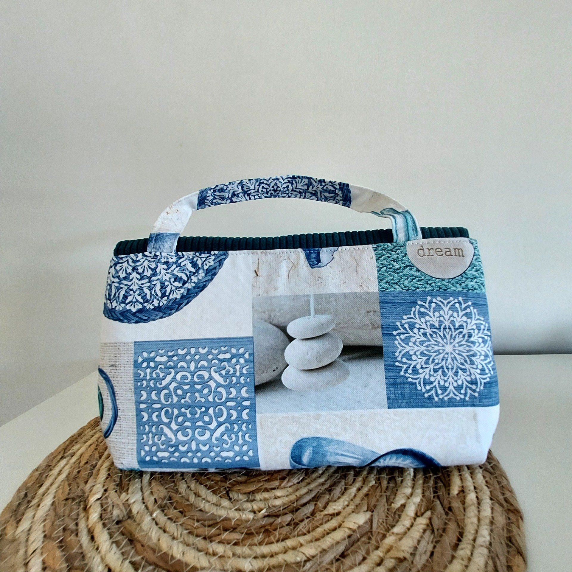 Vanity pour y ranger produits de salle de bains, il se ferme par une patte fantaisie.